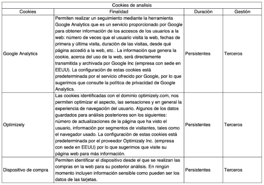 These are those in which the data remains stored in the terminal and can be accessed and processed for a period defined by the person responsible for the cookie, which can range from a few minutes to several years. In this regard, it must be specifically assessed whether the use of persistent cookies is necessary, since the risks to privacy could be reduced by using session cookies. In any case, when persistent cookies are installed, it is recommended that their duration be reduced to the minimum necessary, taking into account the purpose of their use. For these purposes, the